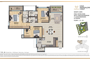 Four-bedroom homes with family and study rooms, three-bedroom homes, two-bedroom homes with a family area, select penthouses, and special garden apartments are available at One Bangalore West. The 50,000-Square-Foot Phoenix Club One, Designed By World-Famous Architects, Features State-Of-The-Art Amenities Such As 2 Outdoor Pools, An Indoor Temperature-Controlled Swimming Pool, A 2-Lane Brunswick Bowling Alley, 2 Olympic Size Badminton Courts, Squash Courts, Multi-Purpose Courts, A Spacious Banquet Hall, And A Poolside Café, Among Others.